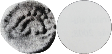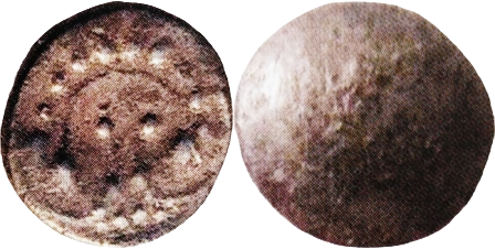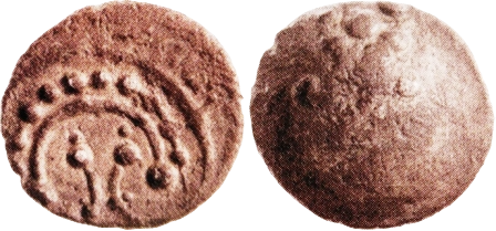 Rv: lineární torques s kuličkami na koncích vně lemovaný oblou linií z kuliček, vně torquesu oblá linie se symetricky zatočenými konci do středu plochy pod torques – při zakončení na každé linii tři kuličky, dole při okraji čtyři kuličky vodorovně